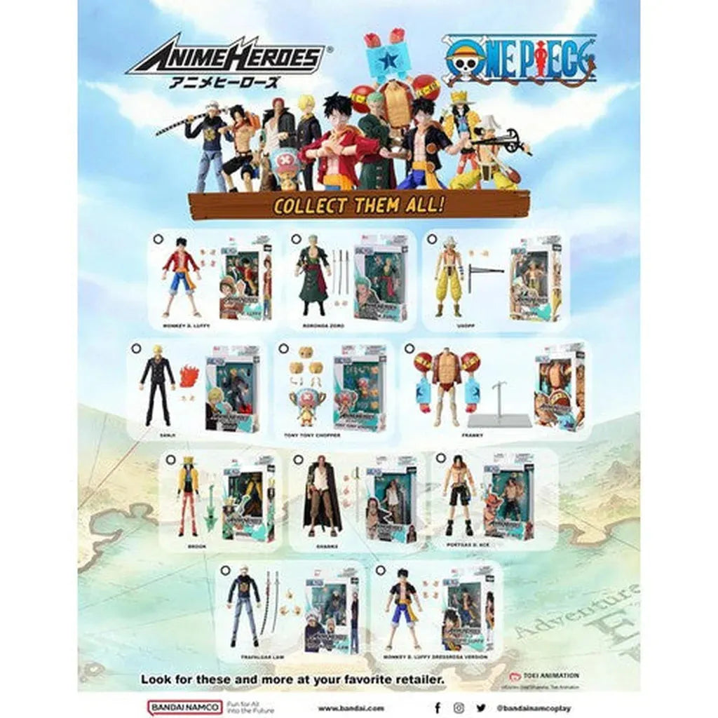 Immerse yourself in the world of One Piece with these 6.5-inch Anime Heroes action figures. Fans of the popular anime can now bring home their favorite characters, like Monkey D. Luffy, and recreate epic battles and missions. With detailed features, these figures look just like their anime counterparts. Experience the excitement and adventure of One Piece with these realistic action figures!