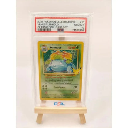 Expertly graded by PSA, this 2021 Pokemon Celebrations Venusaur (PSA 10) Holo card from the Classic Collection Base Set is a must-have for any serious collector. With a perfect PSA 10 grade, this rare and highly sought-after card boasts impeccable condition and will be a valuable addition to any collection.